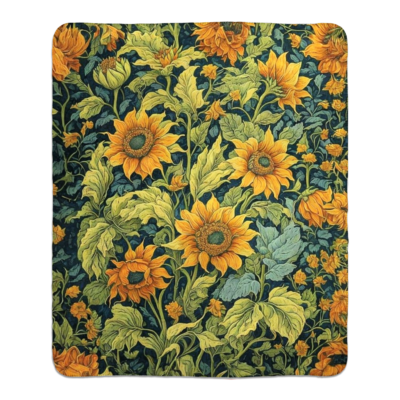 William Morris Style, Sunflowers, Tones, Yellow, Theme, Garden, Flower, Vintage, Botanical, Art, Fleece, Sherpa Throw Blanket, Soft, Silky