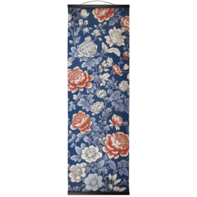 Chinoiserie | Classic Blue | Flower | Pattern | Botanical | Vintage | Nature | Boho | Vertical | Hanging Canvas | Wooden Hanger Frames | Art