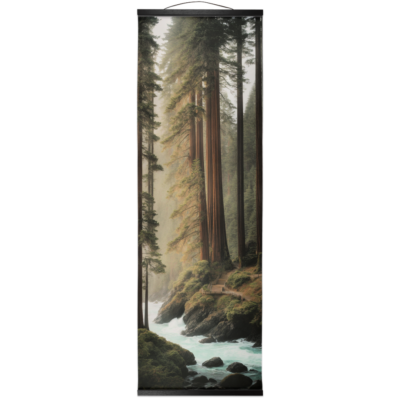 Redwood Trees | Surreal | Forest | Stream | Stairs | Scene | Landscape | Modern Wall Art | Vertical | Hanging Canvas | Wooden Hanger Frames