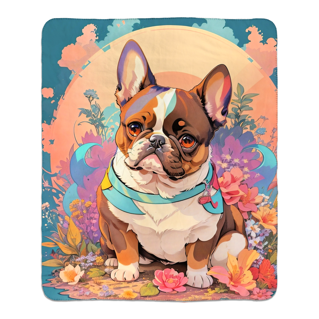 LISTING FOR: French Bulldog, Colorful, Anime, Fantasy, Flowers, Portrait, Fantasy, Fleece, Sherpa, Throw Blanket, Soft, silky